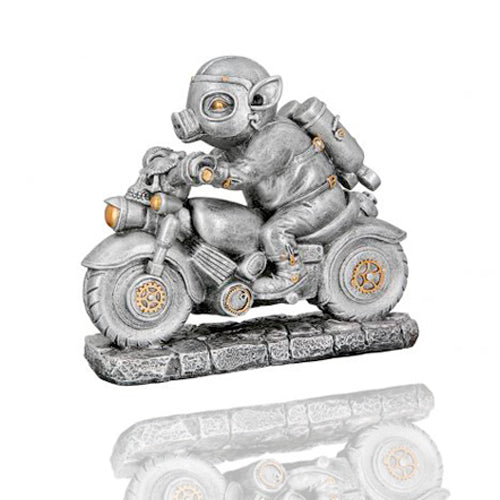 Dekofigur Steampunk Motor-Pig, Schwein auf Motorrad, Gilde