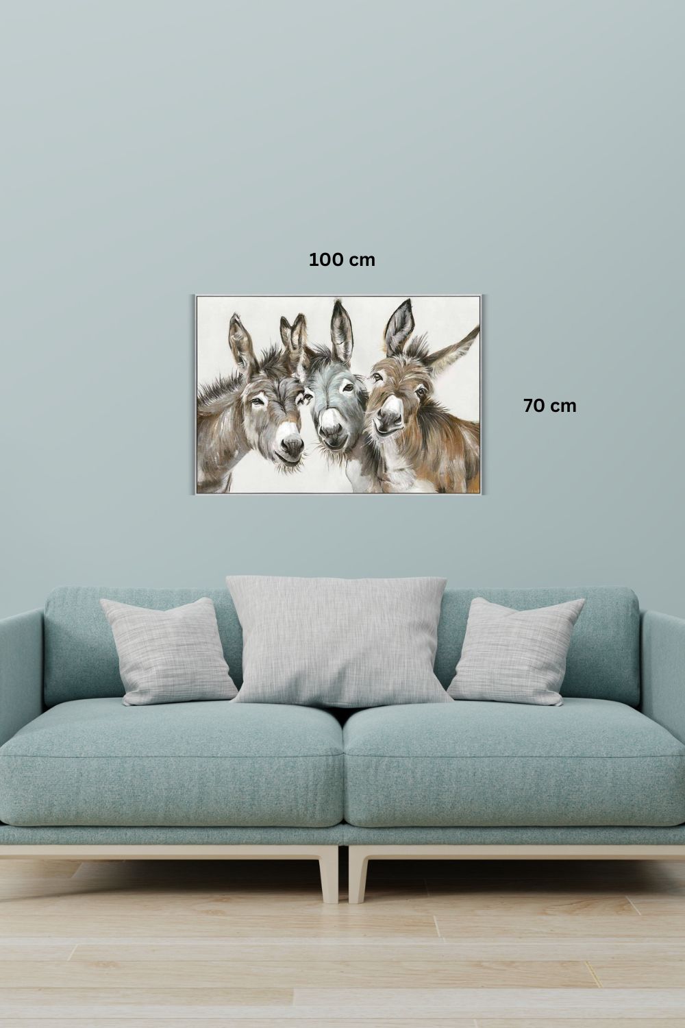 Verleihe deinem Raum einen fröhlichen Akzent mit dem Wandbild „Drei Esel“ und lass die Langohren ihren Charme verbreiten!