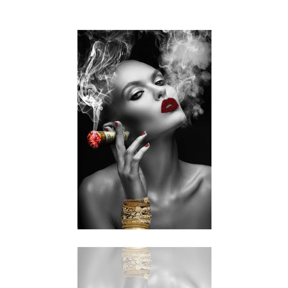Rauchende Schönheit mit roten Lippen, 80 x 120 cm Digitaldruck auf Sicherheitsglas, Imageland