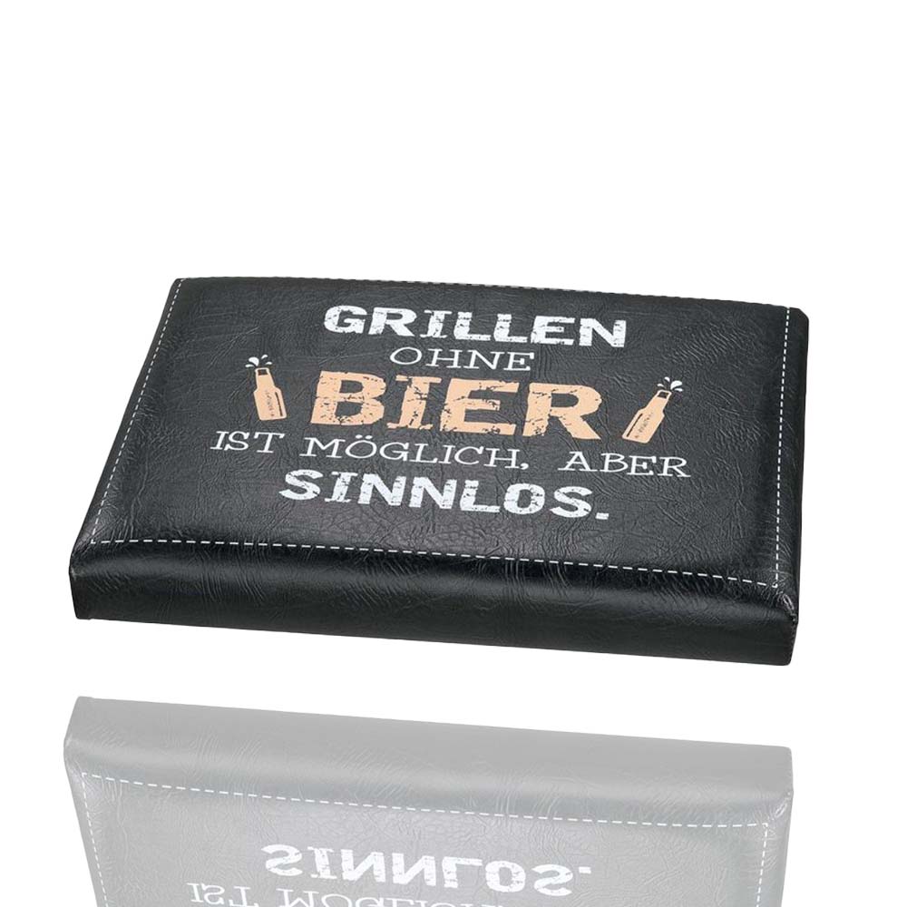Das bequeme Sitzpolster für den Bierkasten spricht besonders alle Grillfreunde an. Der Spruch: Grillen ohne Bier ist möglich aber sinnlos wird hier wörtlich genommen. Mal eben schnell aus einem Bier- oder Kölsch Kasten einen bequemen Sitz gebaut und die Freunde zum Staunen und Lachen gebracht.