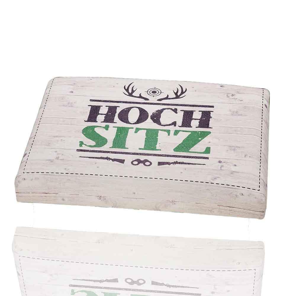 Das Sitzpolster für Bierkästen mit der Beschriftung Hochsitz ist bei Jägern sehr beliebt. Waidmanns Heil oder Horrido!