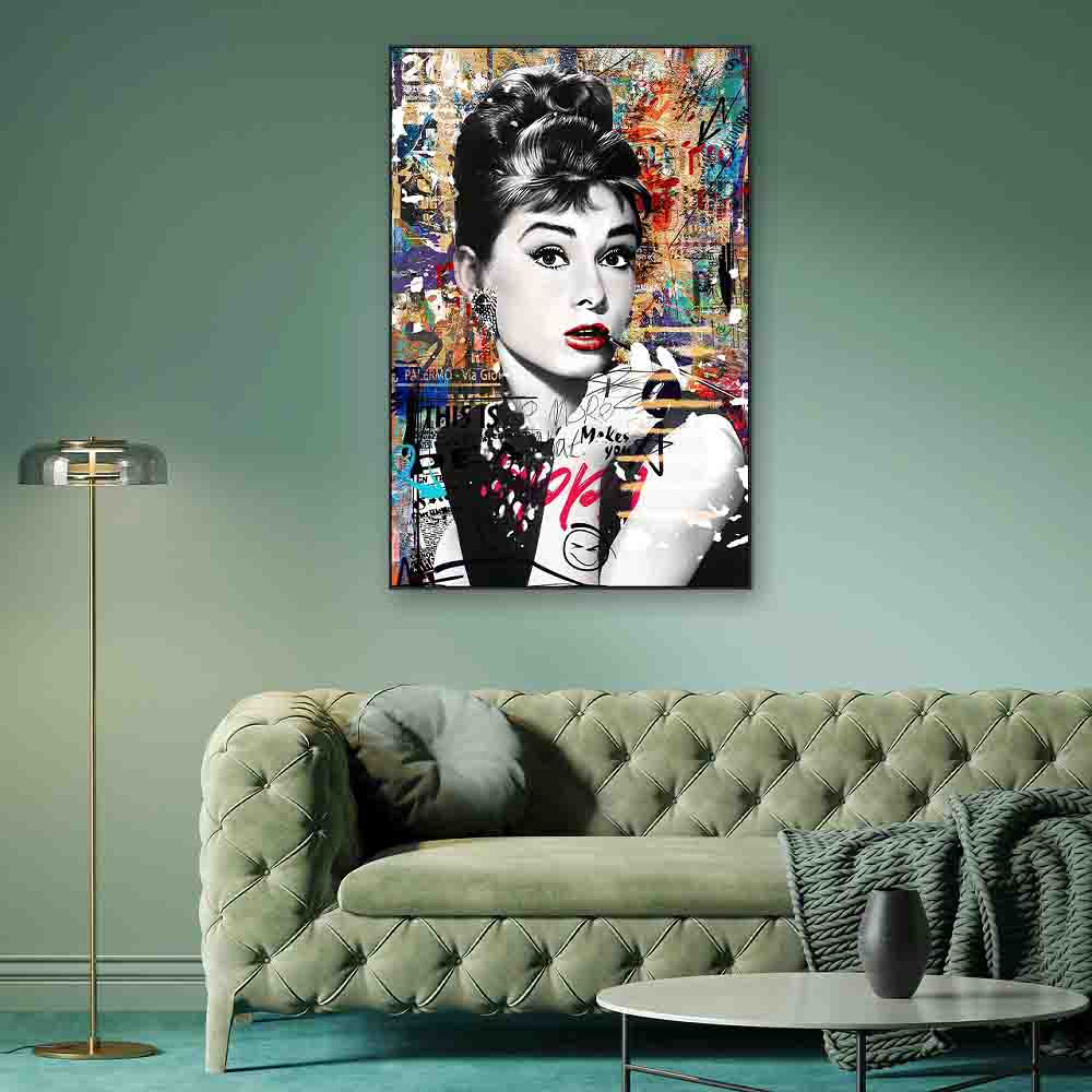 Die Verwendung von High Gloss sorgt dafür, dass die Farben noch kräftiger wirken und das Gemälde das Licht auf einzigartige Weise reflektiert. Dadurch wird nicht nur die Detailgenauigkeit der Darstellung hervorgehoben, sondern auch die positive Ausstrahlung der Schauspielikone verstärkt.