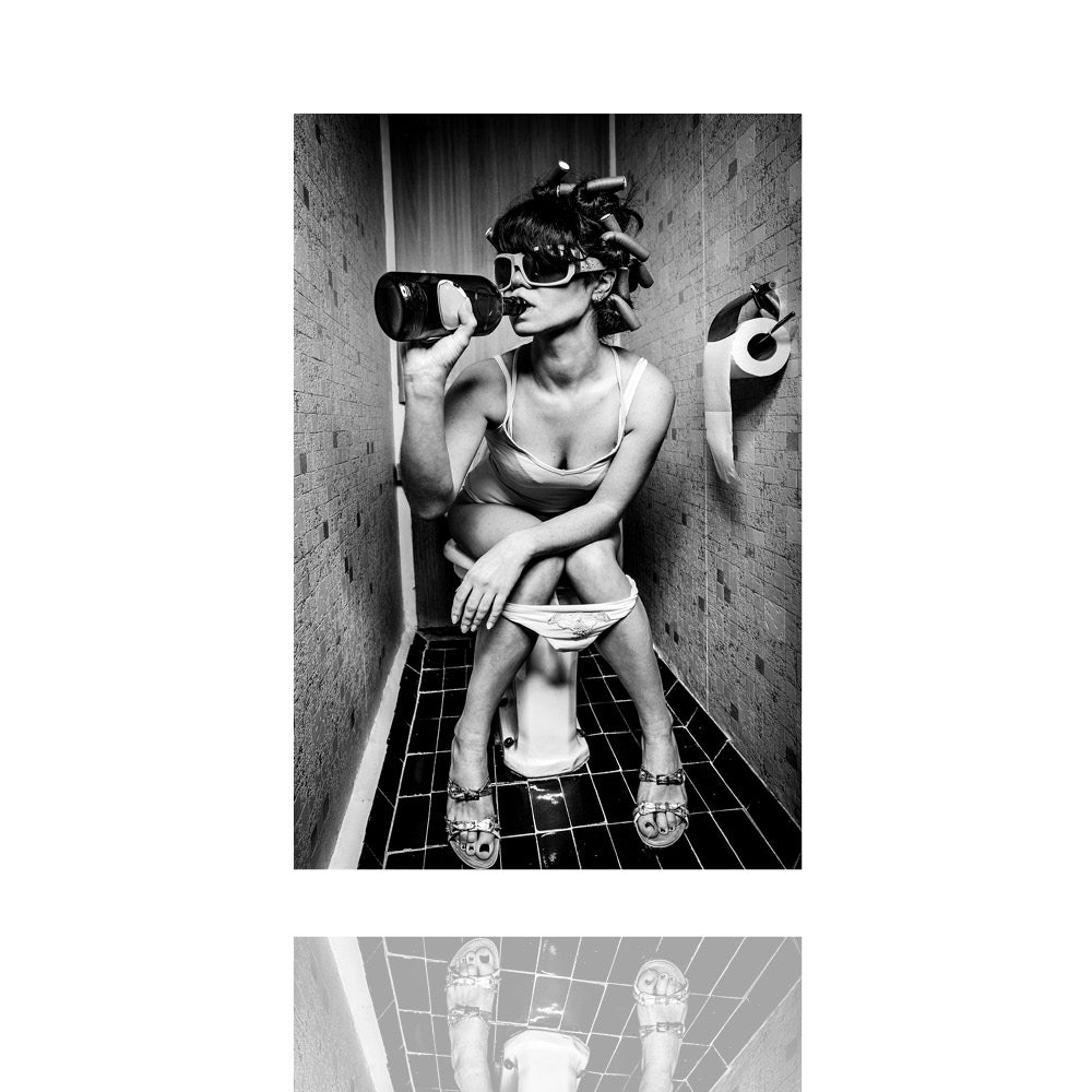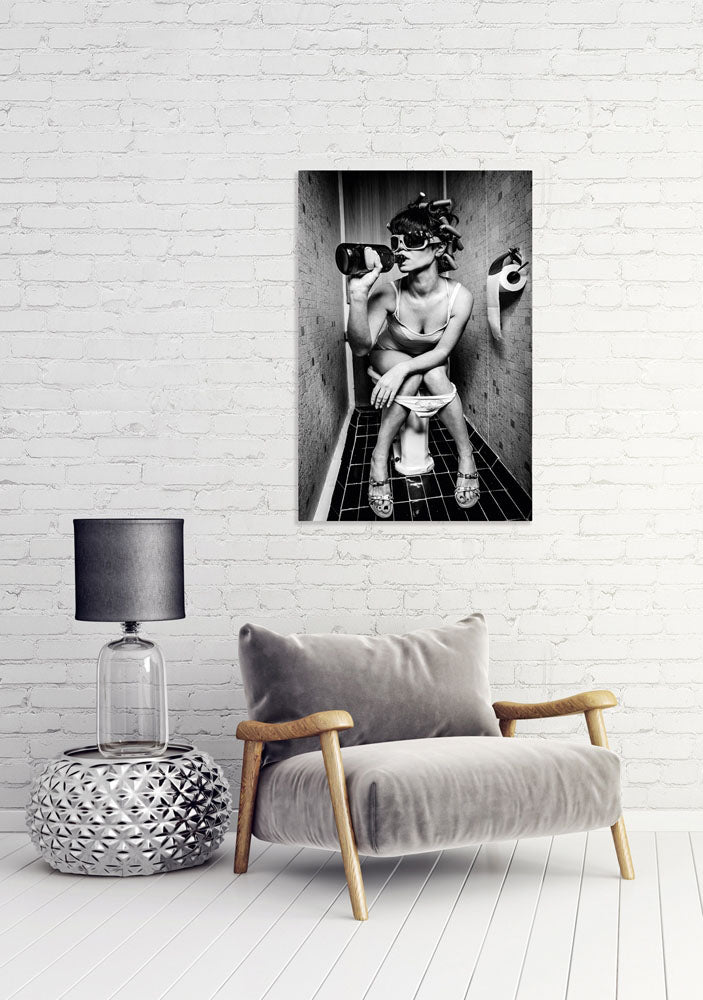 Nach der Party 60 x 90 cm Frau auf der Toilette trinkt aus der Flasche, Imageland