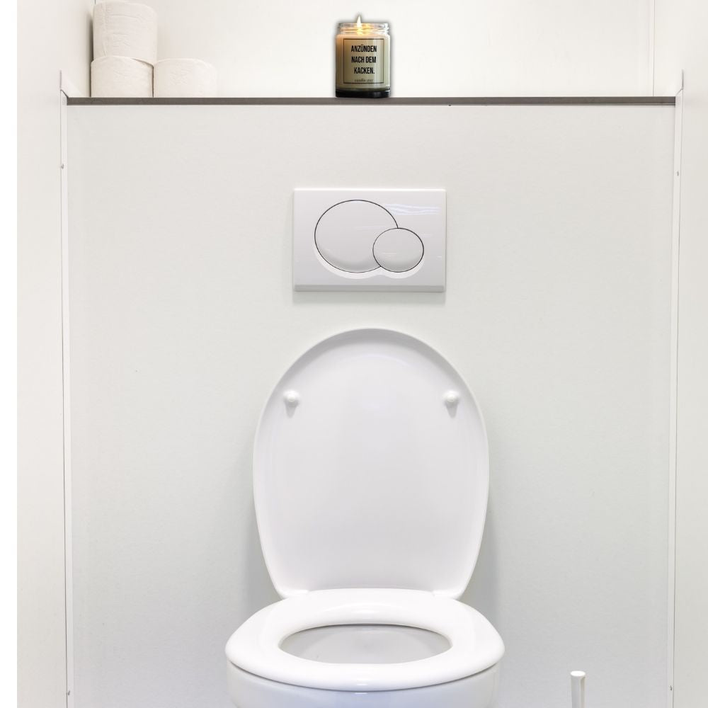 Die originelle Duftkerze mit dem witzigen Spruch „Anzünden nach dem Kacken“ ist der perfekte Hingucker für jede Gästetoilette. Gerne wird sie auch als Geschenk für deinen besten Kumpel zum Geburtstag genommen. Diese außergewöhnliche Geburtstagskerze sorgt für gute Laune und ist ein absolutes Must-Have für jedes Badezimmer oder Gästetoilette.