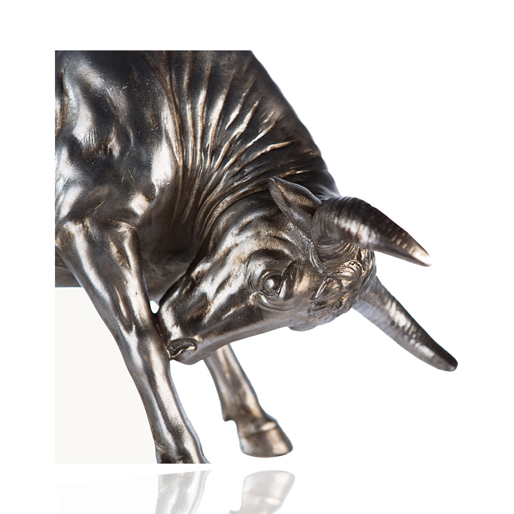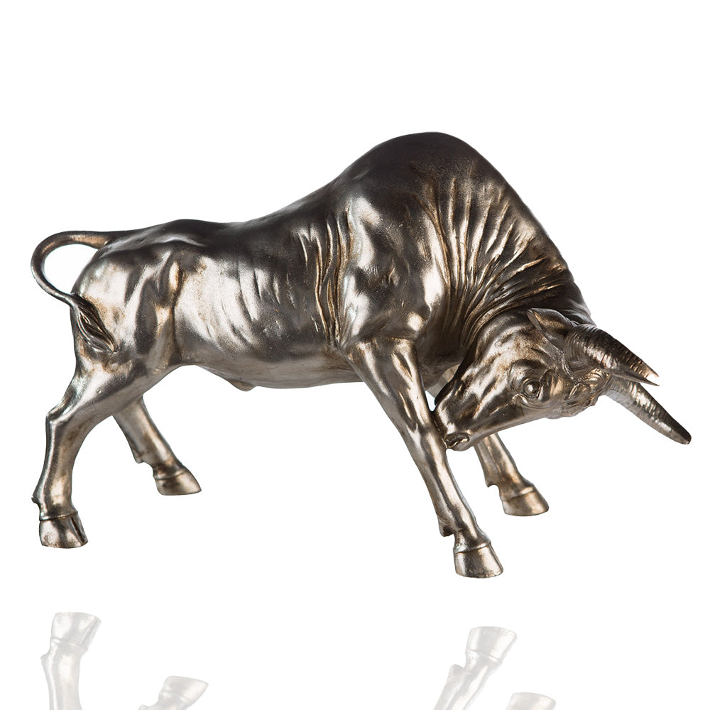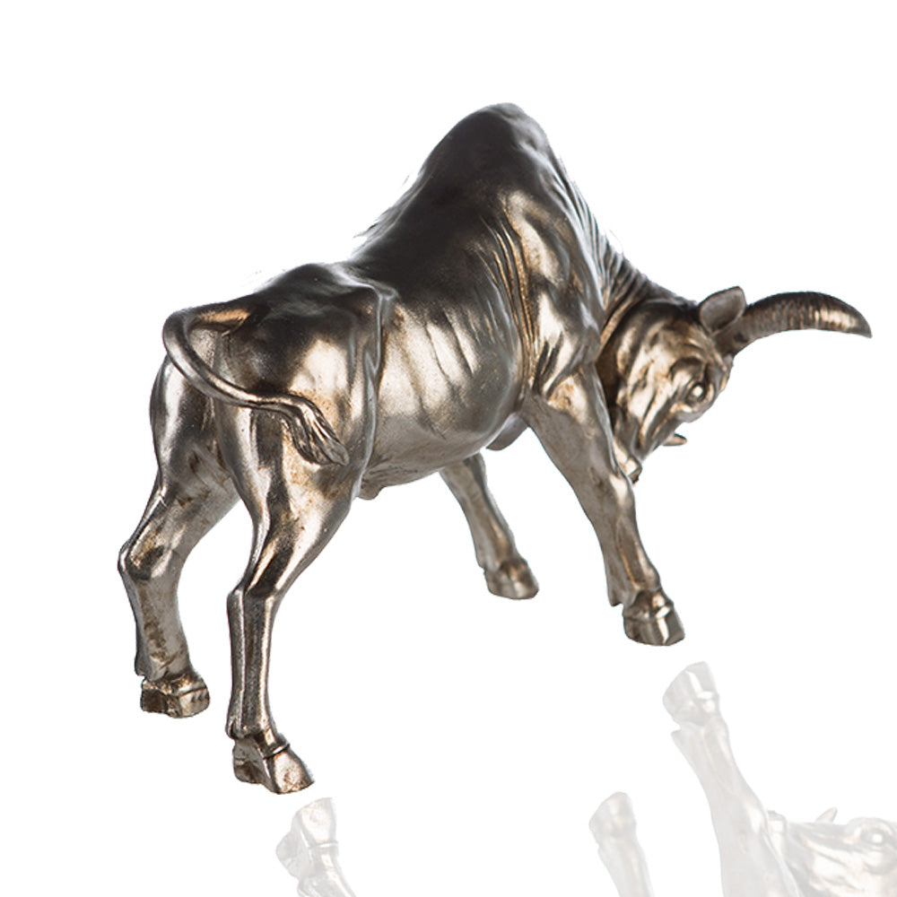 Dekofigur silberfarbener muskulöser Stier, Gilde