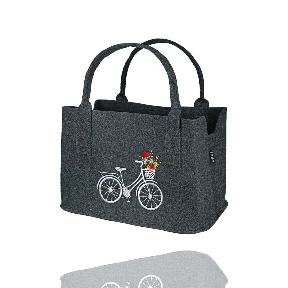 Filztasche Filzshopper Fahrrad mit Blumenkorb, grau, GILDE
