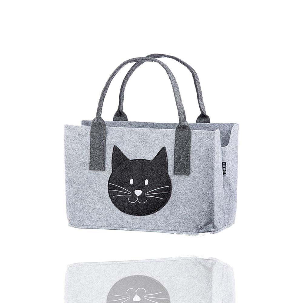 Filztasche Filzshopper hellgrau für Katzenliebhaber, GILDE
