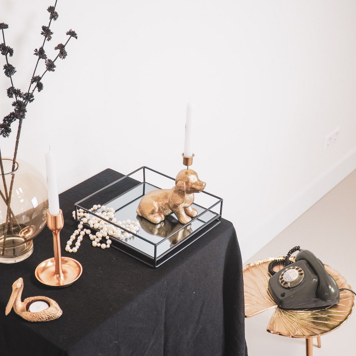 Kerzenhalter Dackel, ein entzückender Kerzenständer in Goldfarbe in Form eines jungen Dackels, ist die perfekte Ergänzung für dein Zuhause. Dieser niedliche junge Hund, inspiriert vom Dachshund, ist nicht nur eine tolle Geschenkidee für Jäger oder Dackelfans, sondern auch eine charmante Deko-Figur, die auch ohne Kerze bezaubert. Der Kerzenständer verschönert das Sideboard oder den Tisch und verleiht jedem Raum eine stilvolle Note. Die Lieferung erfolgt ohne Kerze. Mach es dir gemütlich und setze mit dem Housevitamin Kerzenhalter Dackel ein dekoratives Highlight in deinem Zuhause!