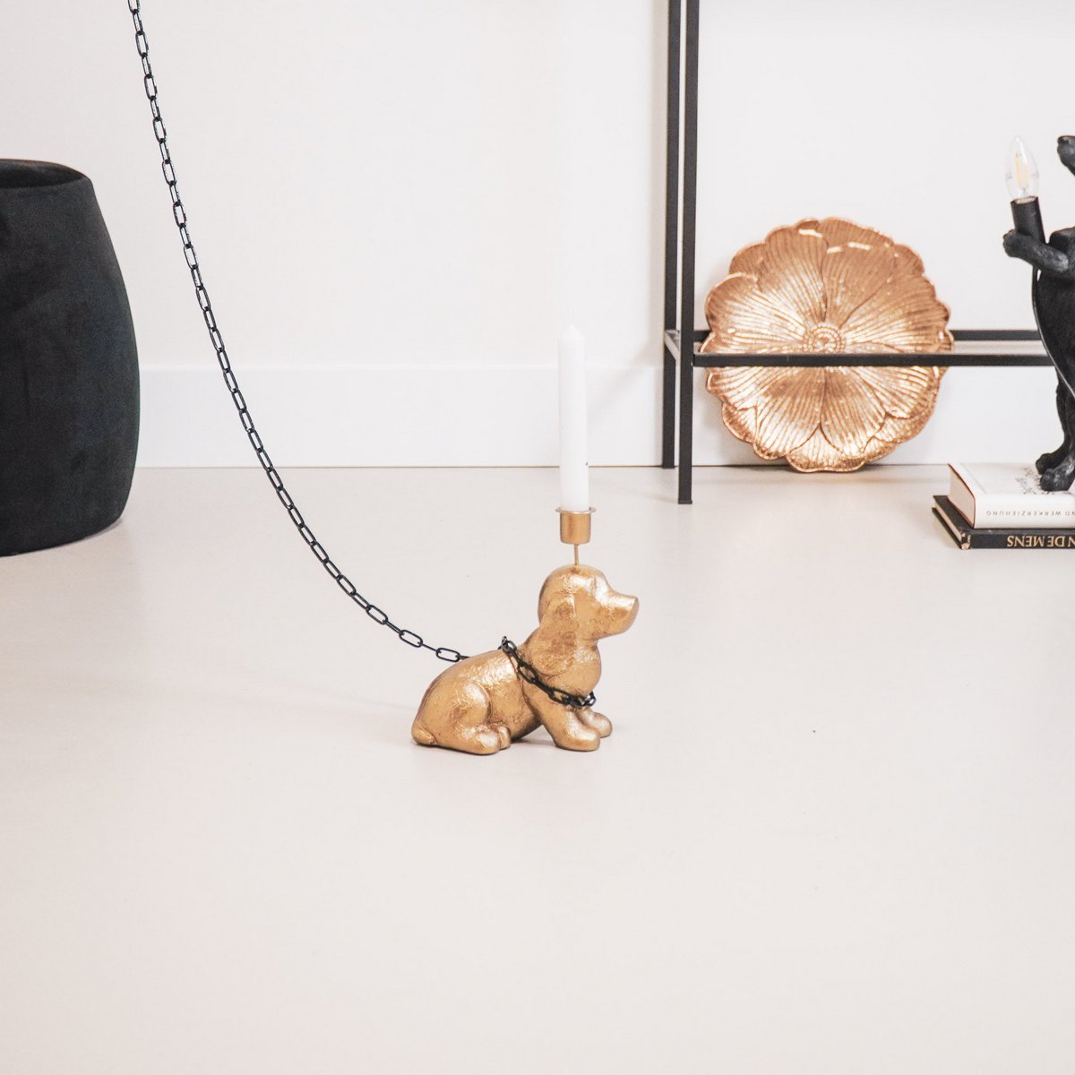 Edler Kerzenständer und Dekofigur Dackel in der Farbe Gold