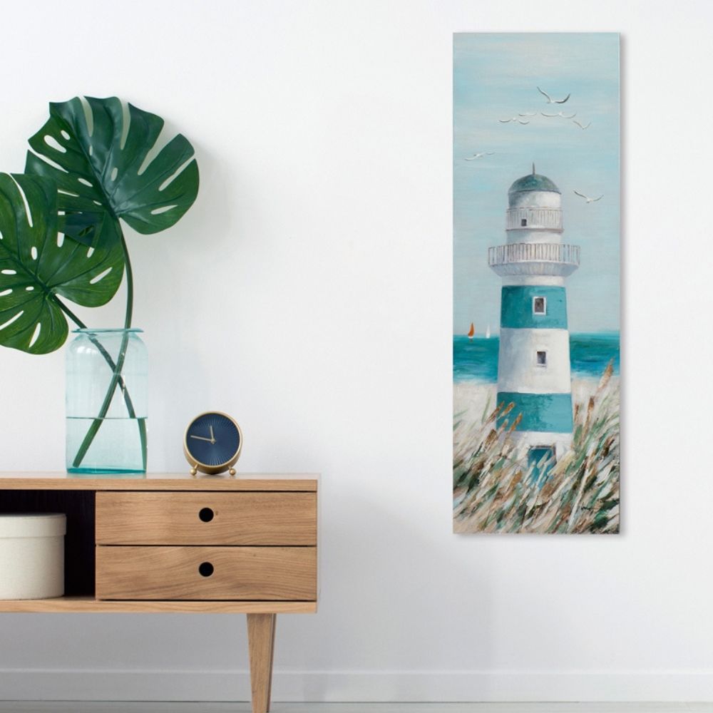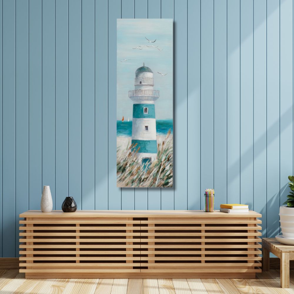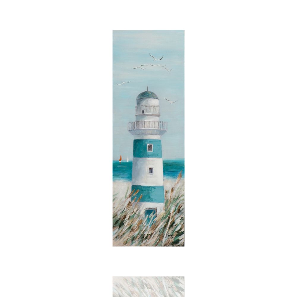 Blauweißer Leuchtturm, schmales Acrylgemälde 40 x 120 cm, ImageLand