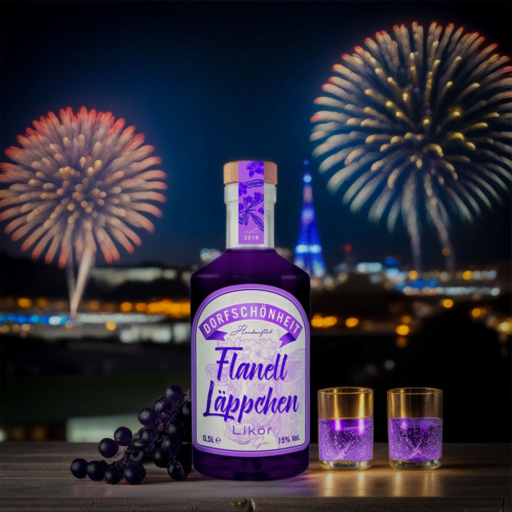 Erlebe den unwiderstehlichen Geschmack von Dorfschönheits Flanellläppchen - dem exquisiten Likör aus dem Bergischen Land. Mit heimischen Säften aus Schwarzer Johannisbeere, Äpfeln und Holunderblütensirup kreiert, ist dieser süffige Likör auf Gin-Basis, eine wahre Gaumenfreude.
