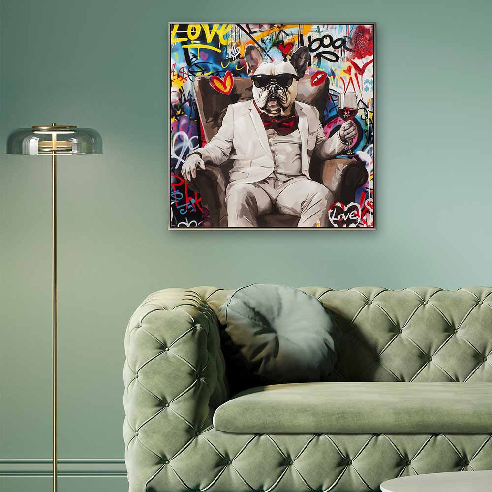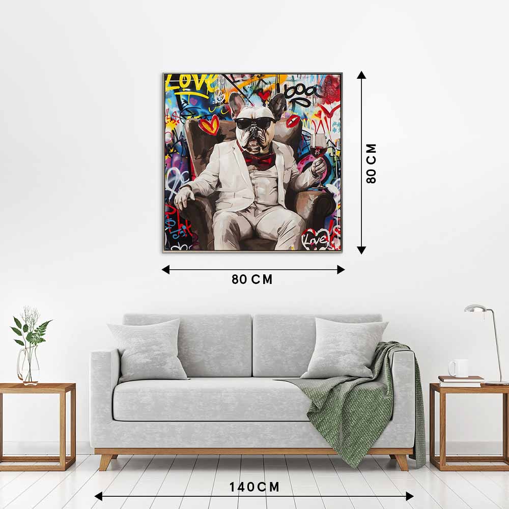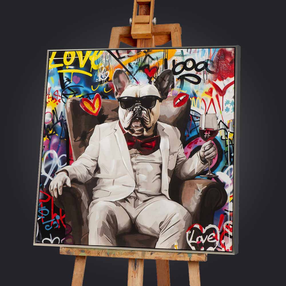 Coole Französische Bulldogge 80 x 80cm, Acrylgemälde, Imageland