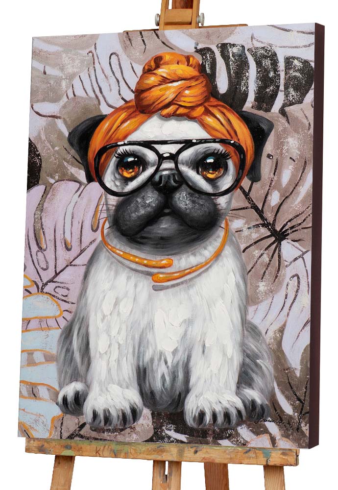 Mops mit Tuch, Acrylgemälde 70 x 100 cm, Imageland
