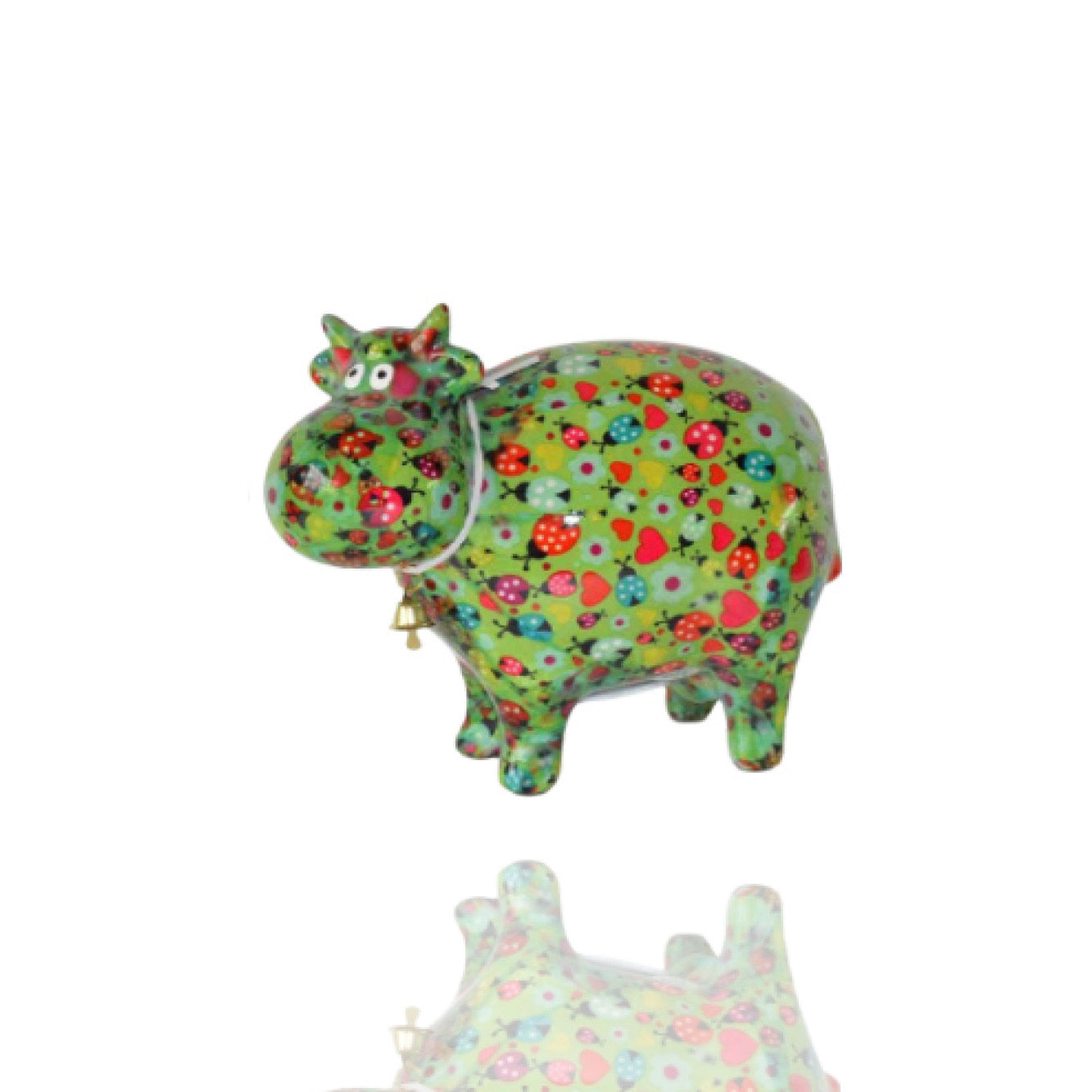 Spardose Kuh Bella, Farbe grün mit Herzen, Pomme Pidou