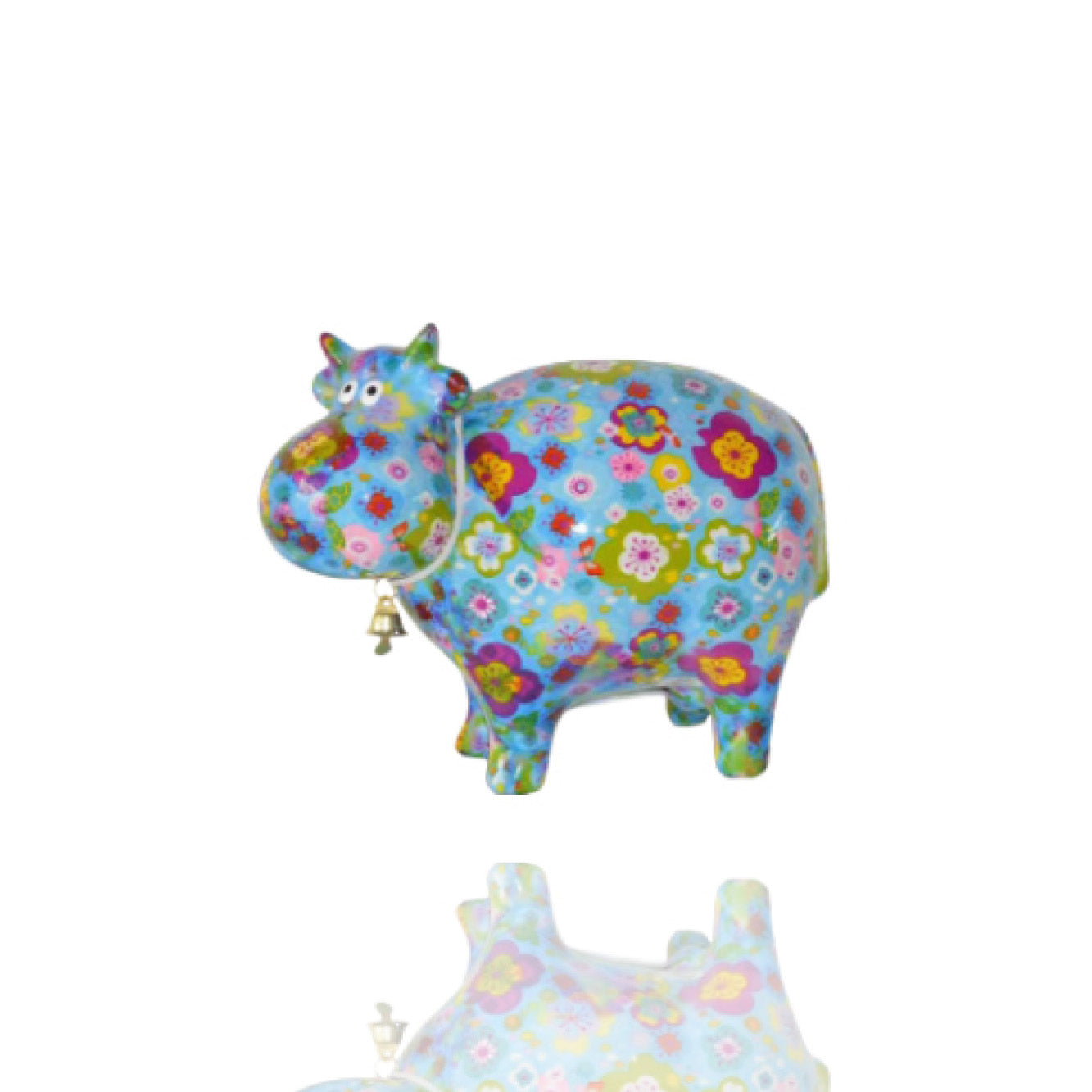 Spardose Kuh Bella, Farbe hellblau mit Blumen, Pomme Pidou
