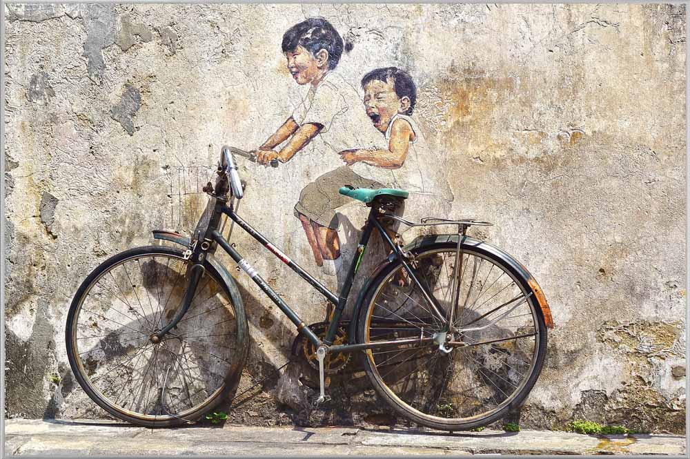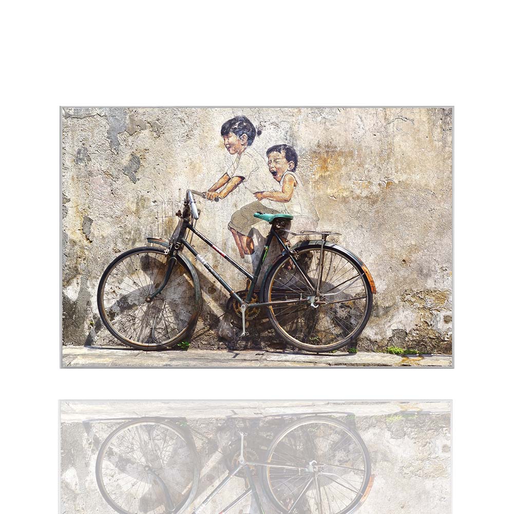 Street Art mit Fahrrad, Digitaldruck auf Verbundplatte 80 x 120 x 1,8 cm, ImageLand