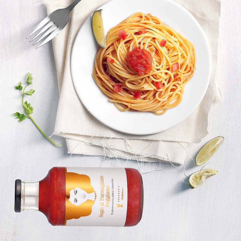 GreenomicGreenomic präsentiert stolz: Sugo al Parmigiano - die perfekte Wahl für Feinschmecker und Gourmets! Die cremige Tomatensoße wird mit hochwertigem Parmesankäse verfeinert und fein abgeschmeckt mit einer köstlichen Mischung aus Sahne, Zwiebeln, Knoblauch, Oregano und schwarzem Pfeffer. Jeder Bissen ist eine wahre Geschmacksexplosion, die deine Sinne verzaubern wird.