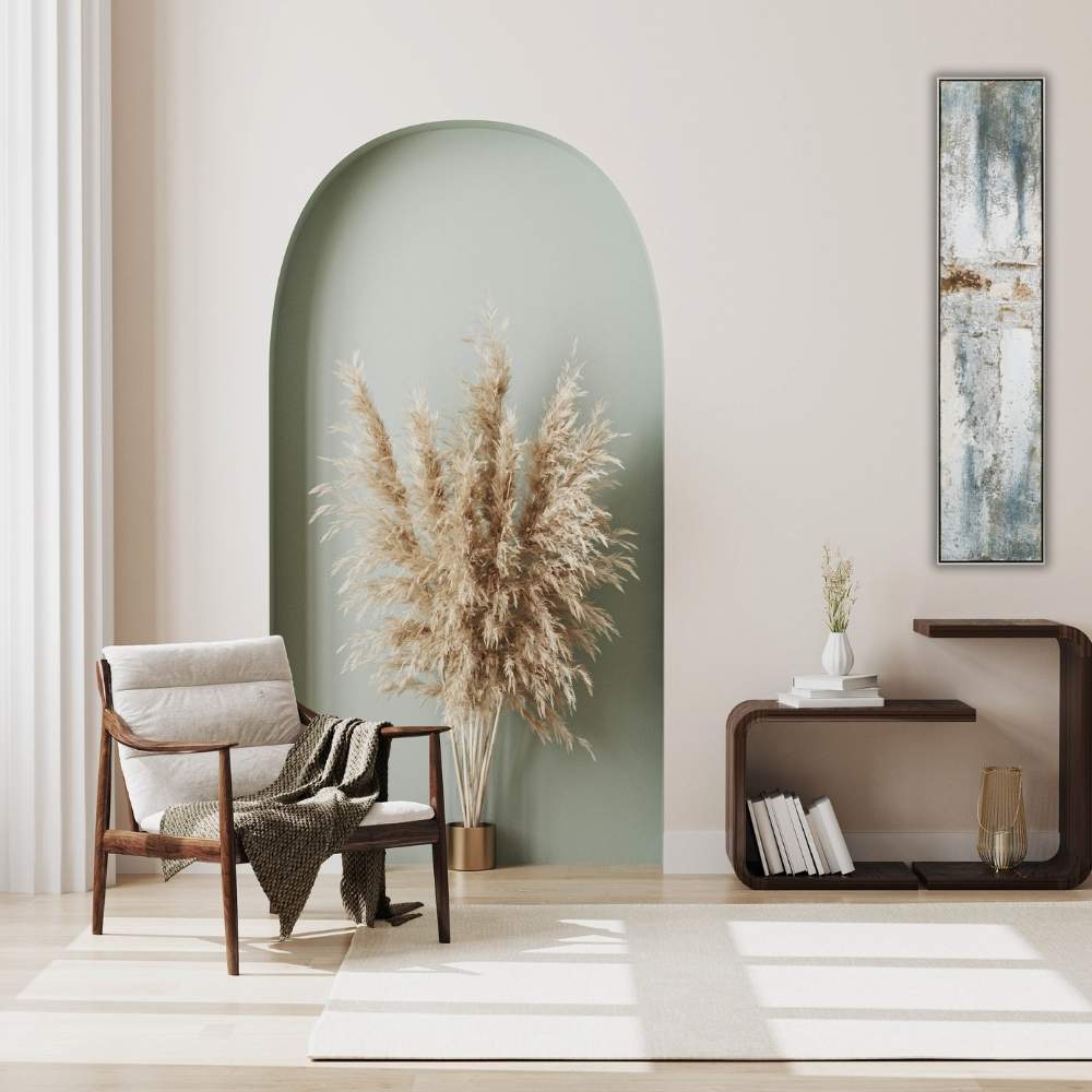 it dem schmalen, handgefertigten Acrylgemälde "Silbernes Leuchten" verleihst Du Deinem Raum einen Hauch von Eleganz. Dieses beeindruckende Kunstwerk überzeugt durch seinen harmonischen Farbverlauf aus Silber und reinem Weiß, ergänzt durch zarte Blautöne. Die stilvollen Farben werden durch die kunstvolle Verarbeitung mit lichtreflektierender Metallfolie optimal zur Geltung gebracht, wodurch das Gemälde eine besondere Tiefe und Anmut erhält.