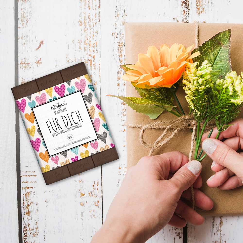 Handgeschöpfte Schokolade von Wildbach "Für Dich"