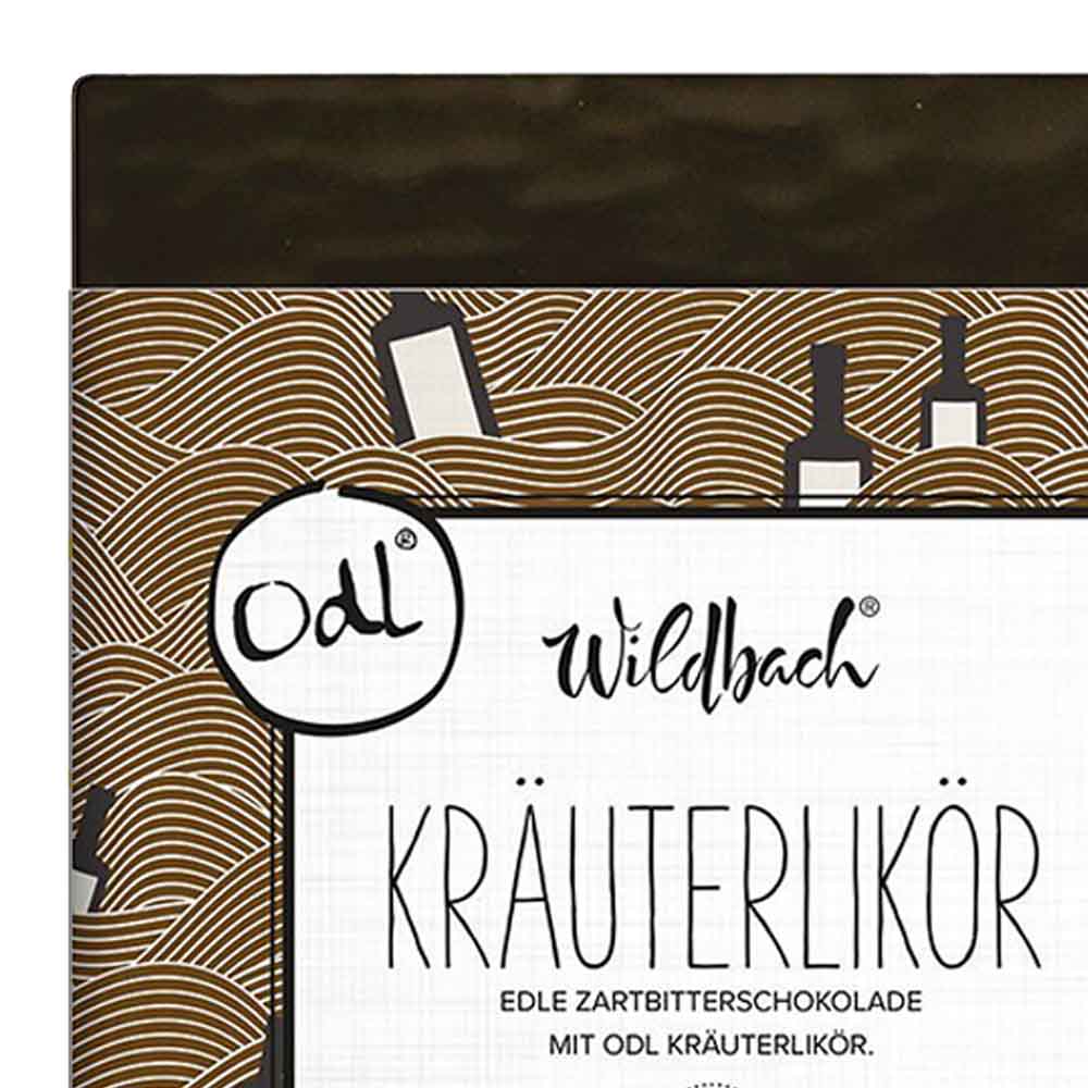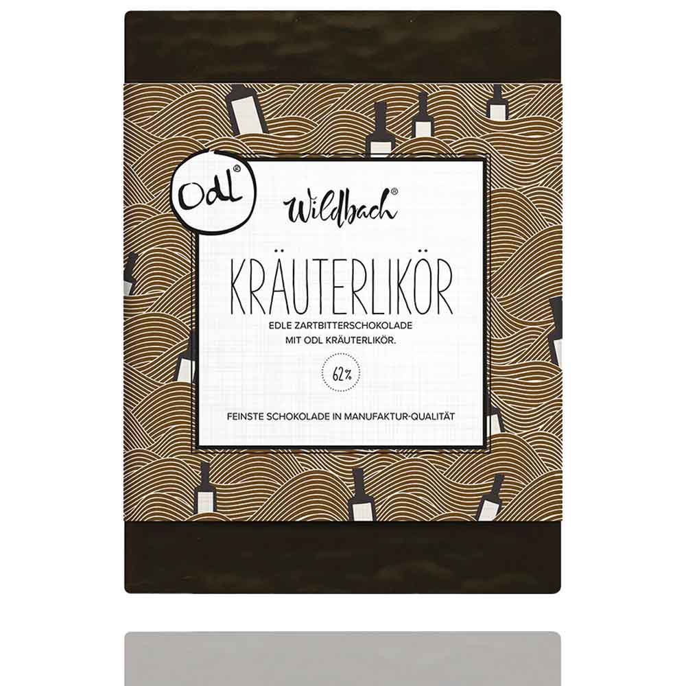 Kräuterlikör, Zartbitterschokolade 62%, 70g. ,Wildbach