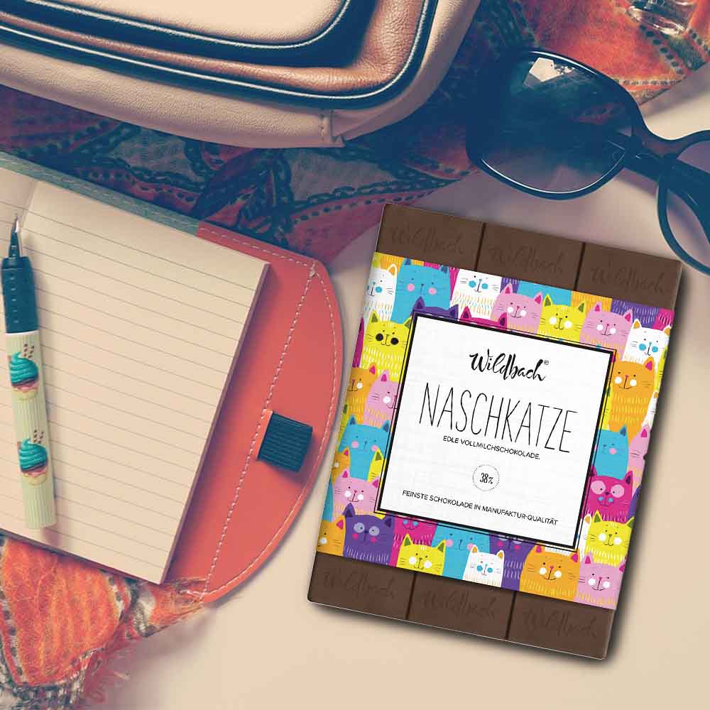 Naschkatze, Edelvollmilch 38% Schokoladentafel 70g. ,Wildbach
