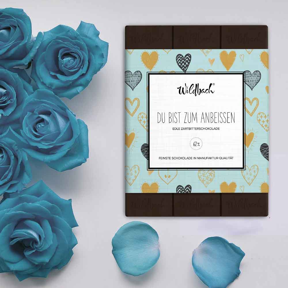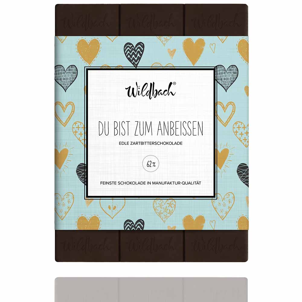 Du bist zum Anbeissen, Zartbitterschokolade 62% Tafel 70g., Wildbach